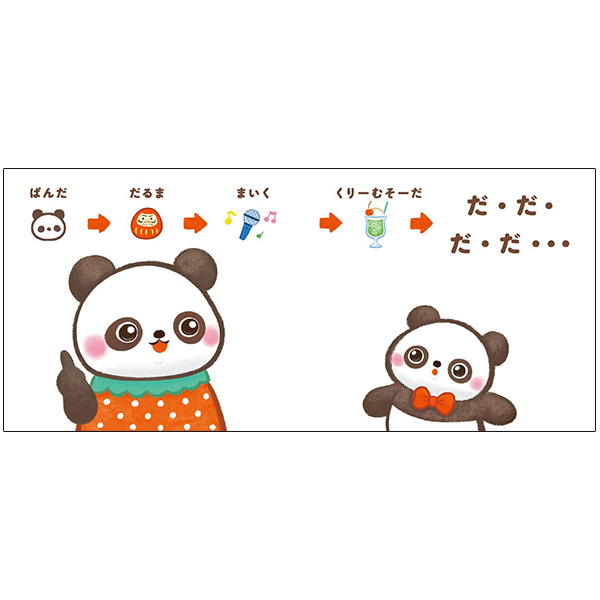 「ぱんだ→だるま→まいく→くりーむそーだ→だ・だ・だ・だ・・・」